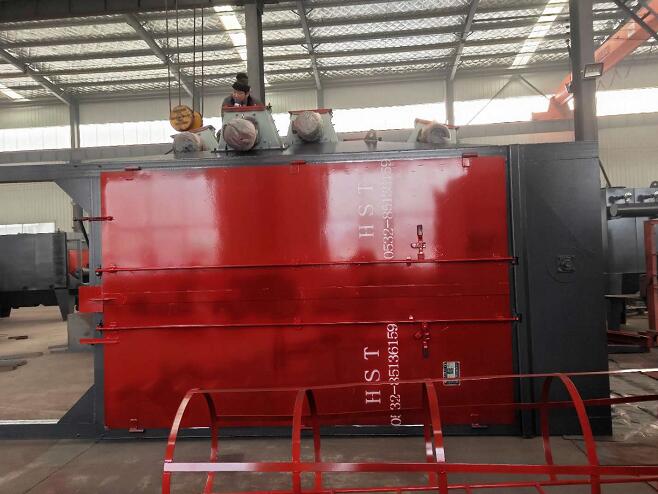 山東青島城陽盛總3730拋丸除銹機,是華盛泰根據客戶市場情況進行定制生產的拋丸除銹機,本拋丸機為吊鉤式,采用加厚版耐磨件提高了易損件的使用時長,同時采用的布袋除塵系統符合我國環保要求。型號Q3730雙吊鉤式拋丸機三個拋丸器