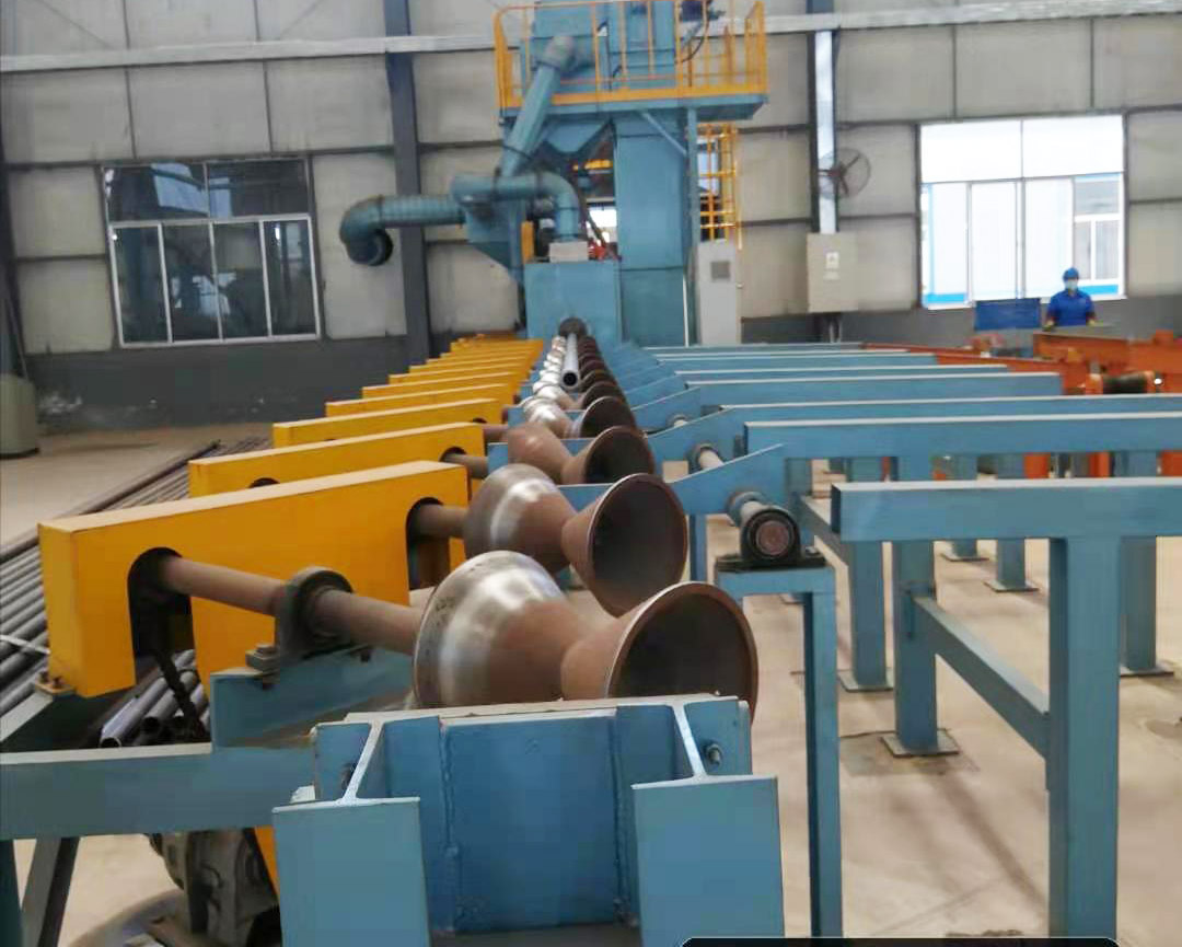 青島華盛泰拋丸機械有限公司生產的鋼管拋丸清理機,主要適用于大、中型鋼管的表面清理和強化,經過清理后的鋼管即呈現出銀白色的金屬光澤,使其鋼管表面提高抗拉抗壓強度,本型號拋丸設備為通過式,輥道連續輸送工件,邊移動邊旋轉,無需人工上料.而且技術先進,生產效率高,清理效果好等優點。