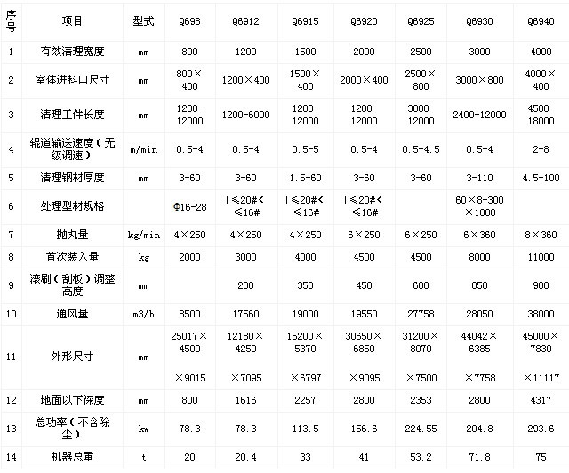 本機是鋼結構焊件與H型鋼鋼板及其它類型鋼材的多功能拋丸清理設備,它能夠對處于原始狀態的鋼材表面施以強烈拋丸,清除其銹斑和焊渣及氧化層。使之獲得一定光潔度均勻一致的金屬光澤表面,以便去除應力,提高鋼結構及鋼材表面涂飾質量與防腐蝕性能。