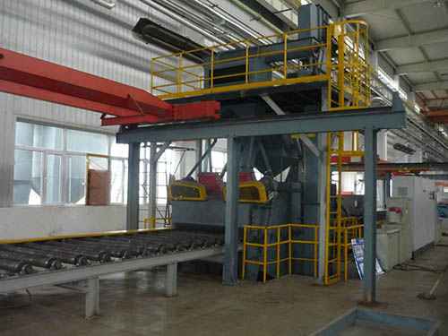 鋼板拋丸機是將鋼板輸送進入拋丸室經過拋丸器將鋼丸拋射到鋼板表面清除鋼板表面污漬銹漬,氧化皮,獲得一定粗糙度的光潔表面,提高了漆膜與鋼材表面的附著力,并提高鋼材的抗疲勞強度和抗腐蝕能力,改善了鋼材內在質量,延長其使用壽命。